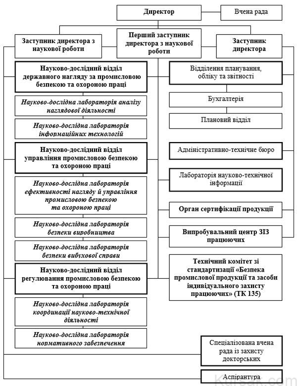 Національний науково-дослідний інститут промислової безпеки та охорони праці (далі – ННДІПБОП) у 2008 році складався з 3-х науково-дослідних відділів, 7 науково-дослідних лабораторій та 3-х допоміжних підрозділів. Структура ННДІПБОП забражена на додатку А.